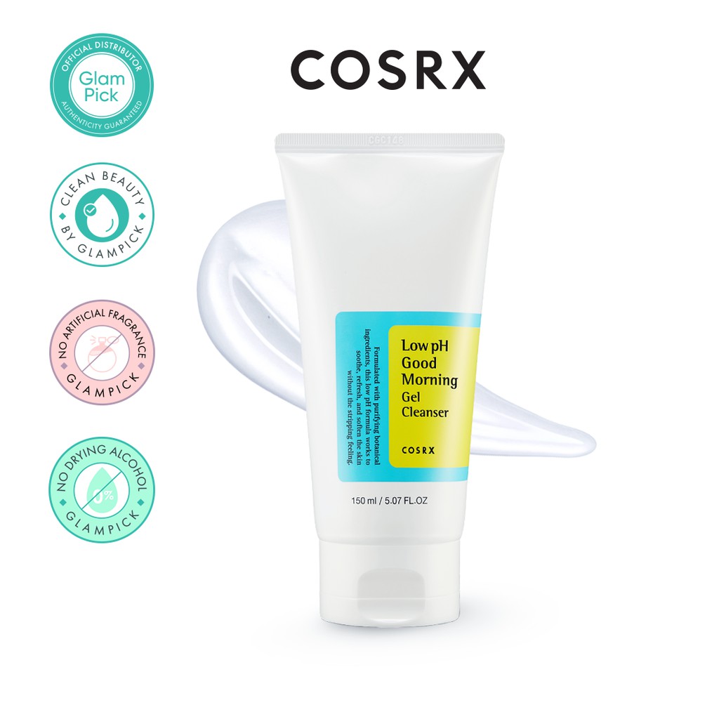 Το Cosrx Low pH Good Morning Gel Cleanser είναι ένα ήπιο καθαριστικό με χαμηλό pH (περίπου 5.0-6.0), σχεδιασμένο για να διατηρεί την υγιή ισορροπία του δέρματος. Είναι κατάλληλο για όλους τους τύπους δέρματος, συμπεριλαμβανομένων των ευαίσθητων και ακνεϊκών επιδερμίδων.