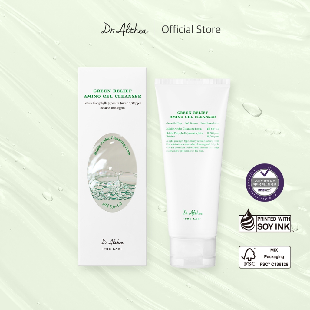 Το Dr. Althea Green Relief Amino Gel Cleanser (100ml) είναι ένα ήπιο καθαριστικό προσώπου με χαμηλό pH (5.0-6.0), ιδανικό για όλους τους τύπους δέρματος, συμπεριλαμβανομένων των ευαίσθητων και των ξηρών επιδερμίδων. Παρέχει βαθύ καθαρισμό χωρίς να διαταράσσει τον φυσικό φραγμό της επιδερμίδας. Η σύνθεσή του περιέχει συστατικά όπως: