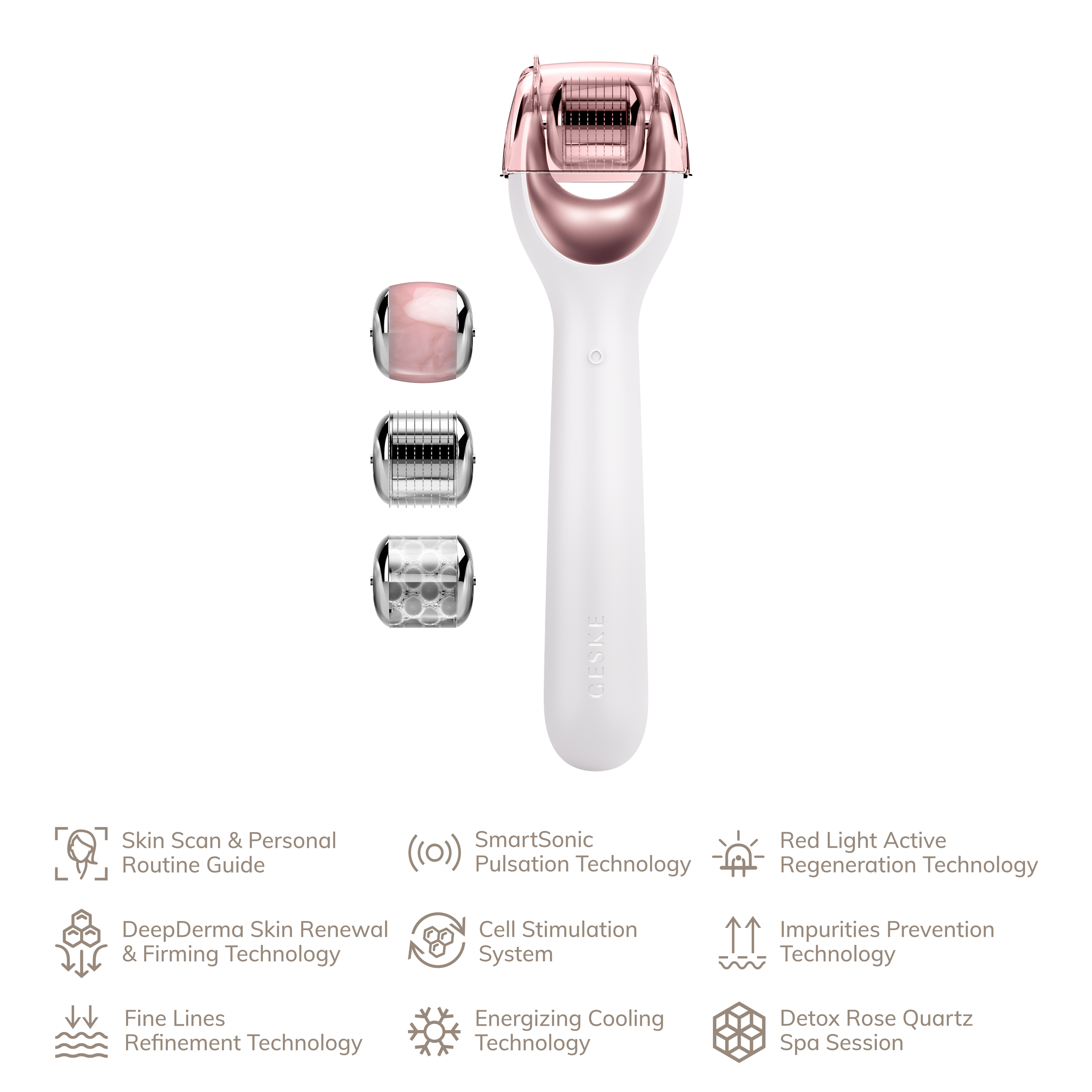Το GESKE Micro Needle Face Roller 9 in 1 είναι σχεδιασμένο να βελτιώσει την όψη και την υφή της επιδερμίδας μέσω της διαδικασίας της μικροβελονισμού. Αυτό το εργαλείο περιποίησης προσφέρει πολλαπλές λειτουργίες, χάρη στις διαφορετικές κεφαλές που περιλαμβάνει, κάθε μία από τις οποίες έχει συγκεκριμένη εφαρμογή για διαφορετικά μέρη του προσώπου και του σώματος.