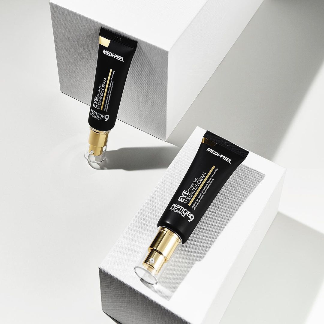 Η Peptide 9 Hyaluronic Volume Eye Cream της MediPeel πρόκειται για μια κρέμα αντιγήρανσης για την περιοχή γύρω από τα μάτια, που περιλαμβάνει τα καλύτερα συστατικά που θα σε βοηθήσουν να απαλλαγείς από τις λεπτές γραμμές και τις ανεπιθύμητες ρυτίδες. Είναι σχεδιασμένη με το αντιγηραντικό σύμπλεγμα Liftonin, ελαστίνη, κολλαγόνο και υαλουρονικό οξύ τα οποία συμβάλλουν στην βαθιά ενυδάτωση της επιδερμίδας σου, επαναφέροντας τη σφριγηλότητα και την ελαστικότητα της.