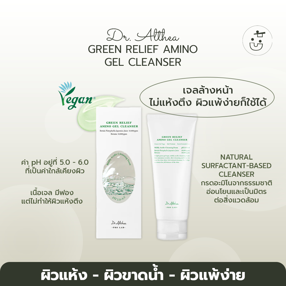 Το Dr. Althea Green Relief Amino Gel Cleanser (100ml) είναι ένα ήπιο καθαριστικό προσώπου με χαμηλό pH (5.0-6.0), ιδανικό για όλους τους τύπους δέρματος, συμπεριλαμβανομένων των ευαίσθητων και των ξηρών επιδερμίδων. Παρέχει βαθύ καθαρισμό χωρίς να διαταράσσει τον φυσικό φραγμό της επιδερμίδας. Η σύνθεσή του περιέχει συστατικά όπως: