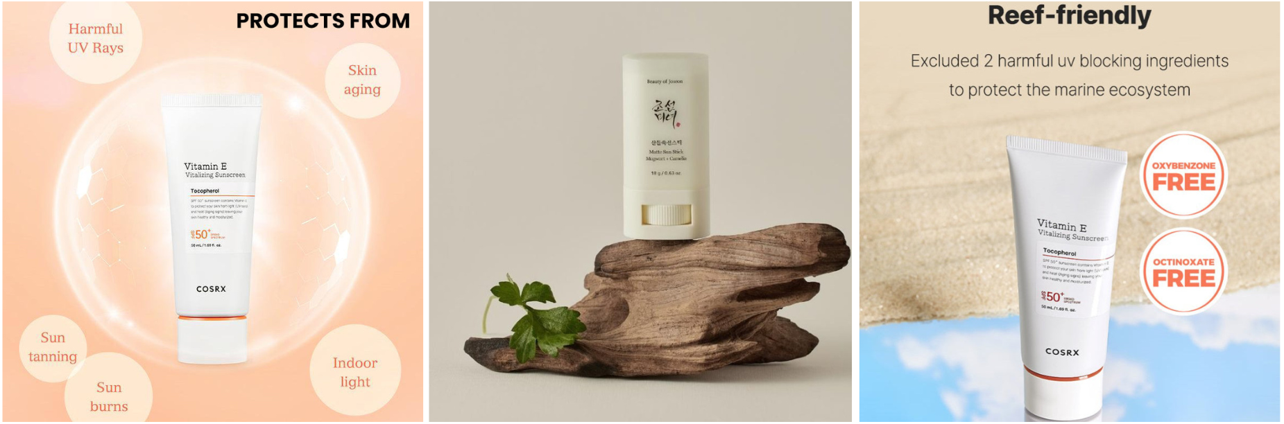Τα κορεάτικα καλλυντικά έχουν μία ευρεία γκάμα από αντιλιακά SPF για όλους τους τύπους επιδερμίδας (ξηρή, λιπαρή, μικτή).